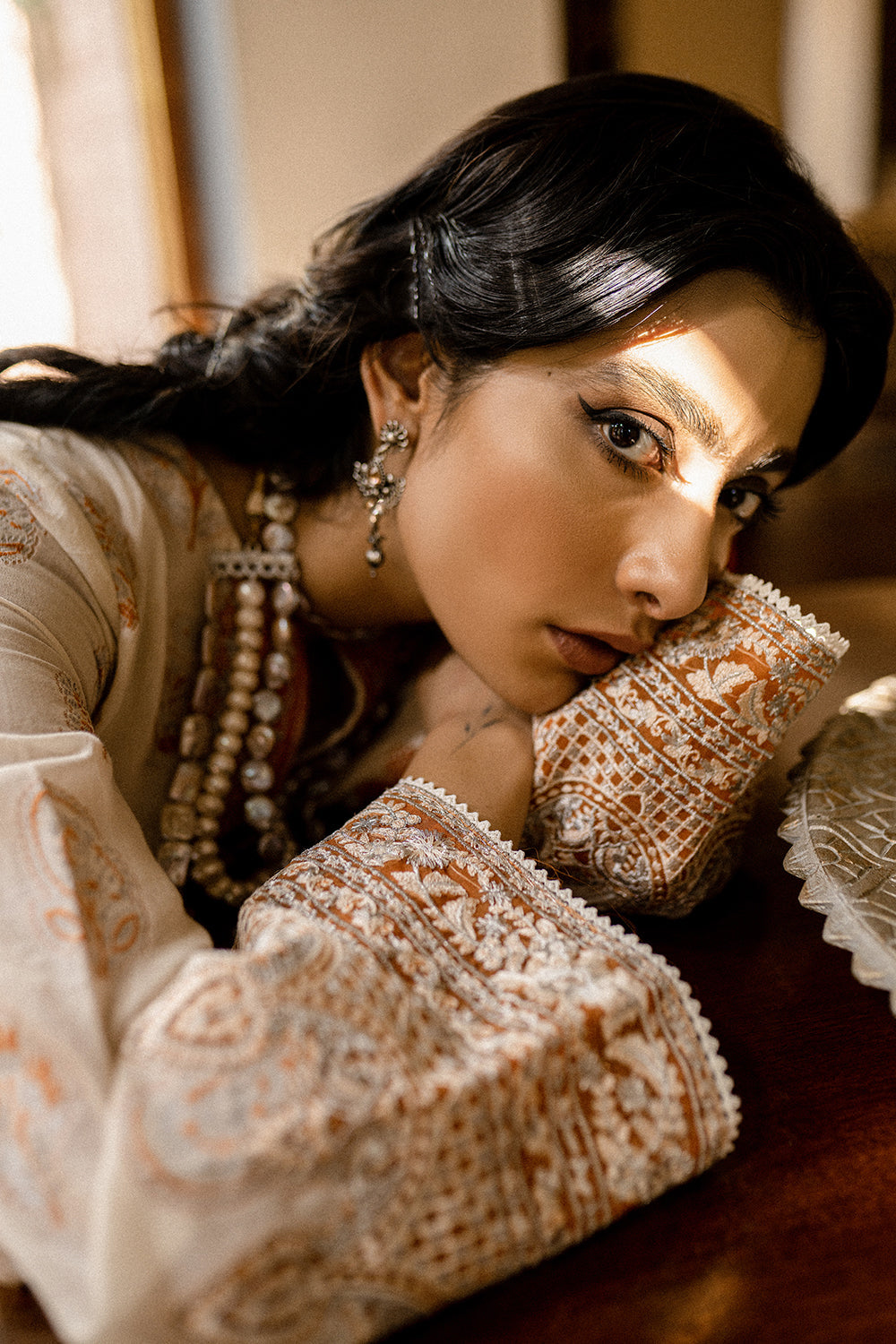 Stitched articles come with trousers tailored to match the unstitched trouser fabric provided. Please note that any appearance of shararas/ghararas in product images is for shoot purposes only unless otherwise specified in product details.