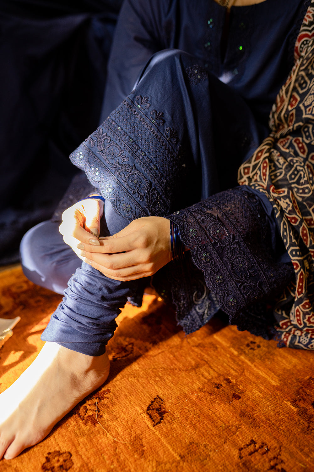 Stitched articles come with trousers tailored to match the unstitched trouser fabric provided. Please note that any appearance of shararas/ghararas in product images is for shoot purposes only unless otherwise specified in product details.