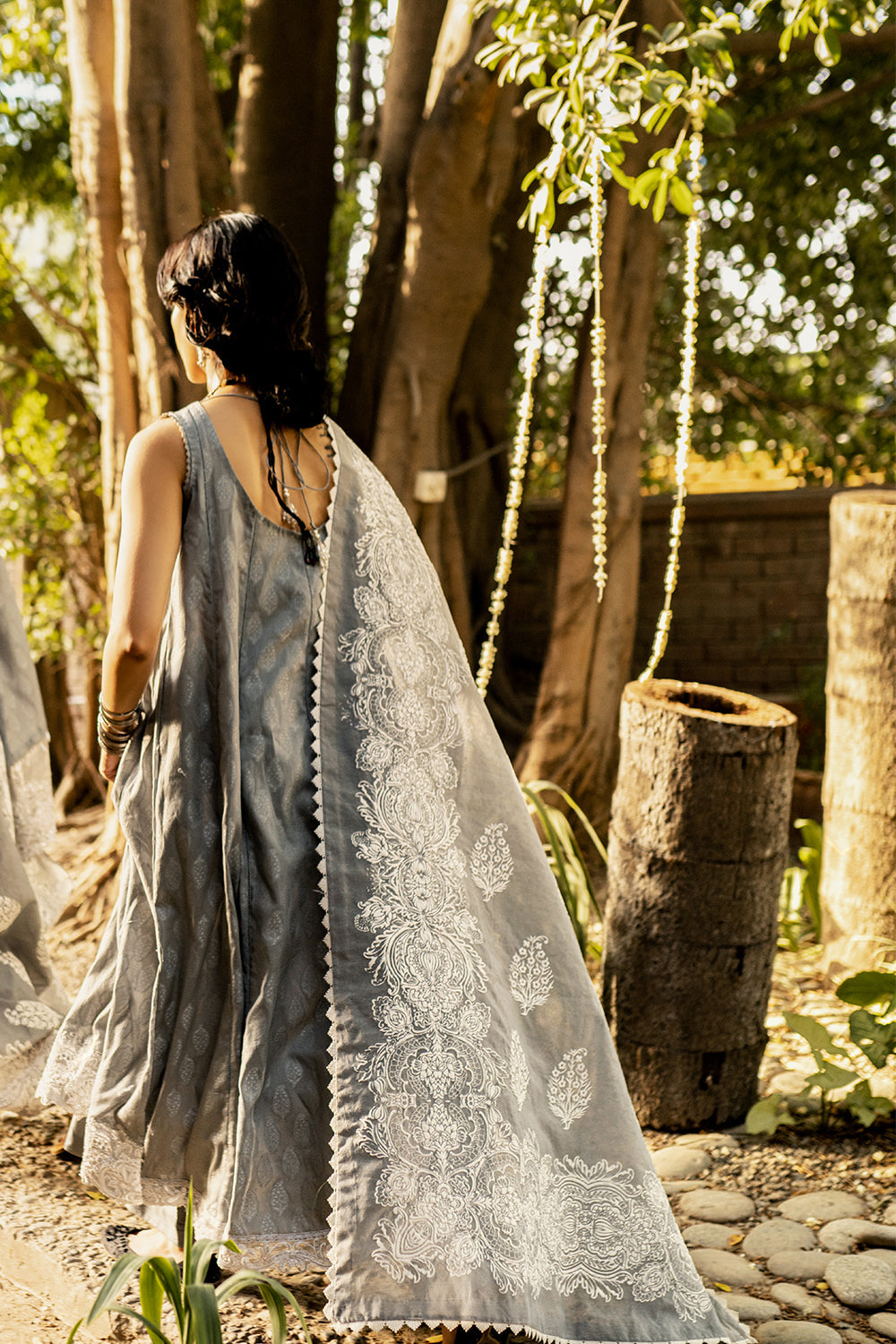 Stitched articles come with trousers tailored to match the unstitched trouser fabric provided. Please note that any appearance of shararas/ghararas in product images is for shoot purposes only unless otherwise specified in product details.