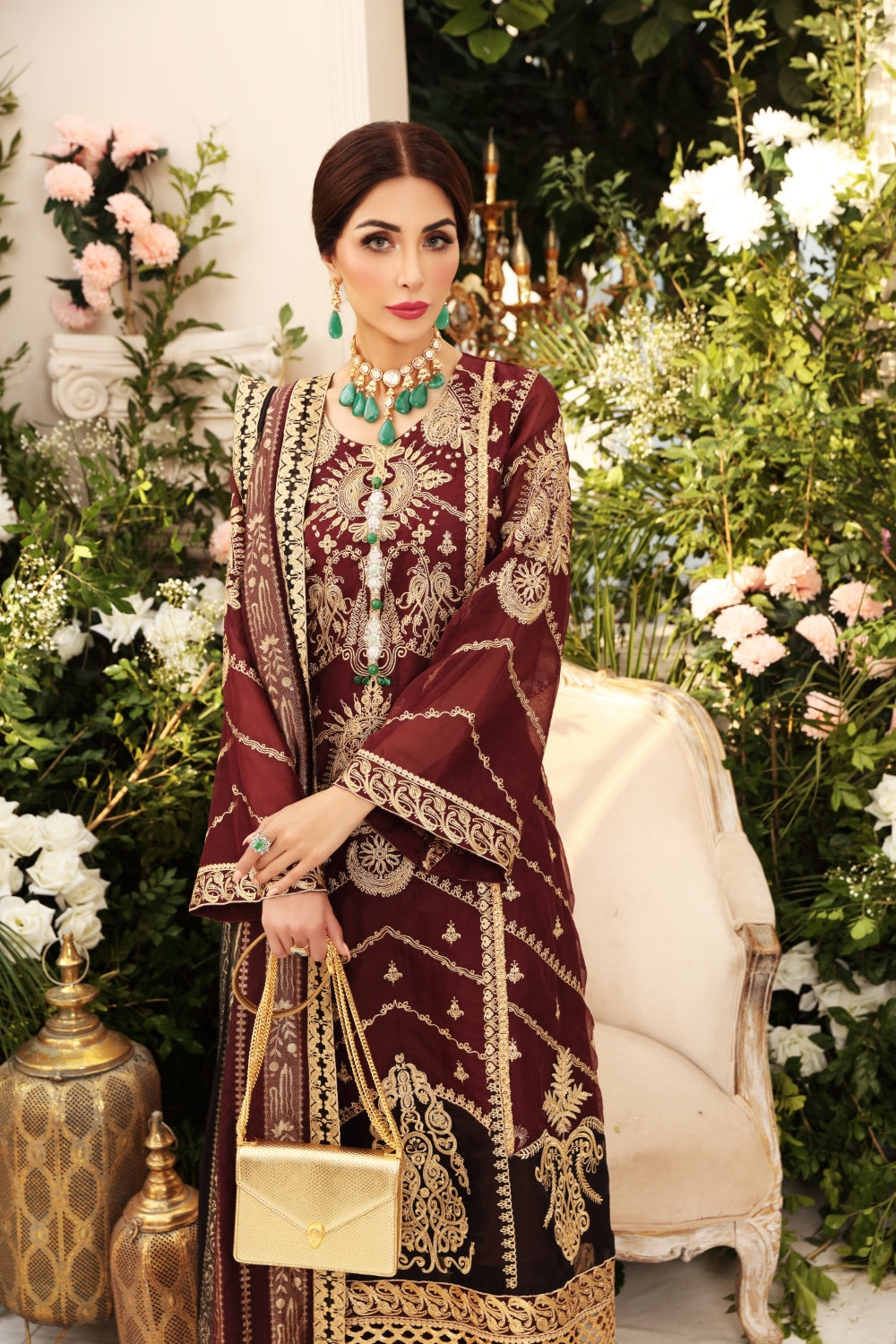 MARORRI TILLA EMB SLEEVES ON ORGANZA 02 PURE SILK ORGANZA JAQUARD DUPATTA 2.75Y