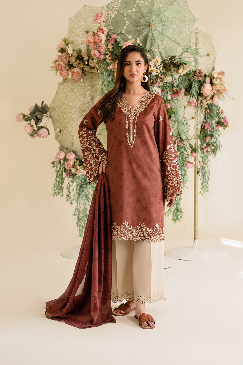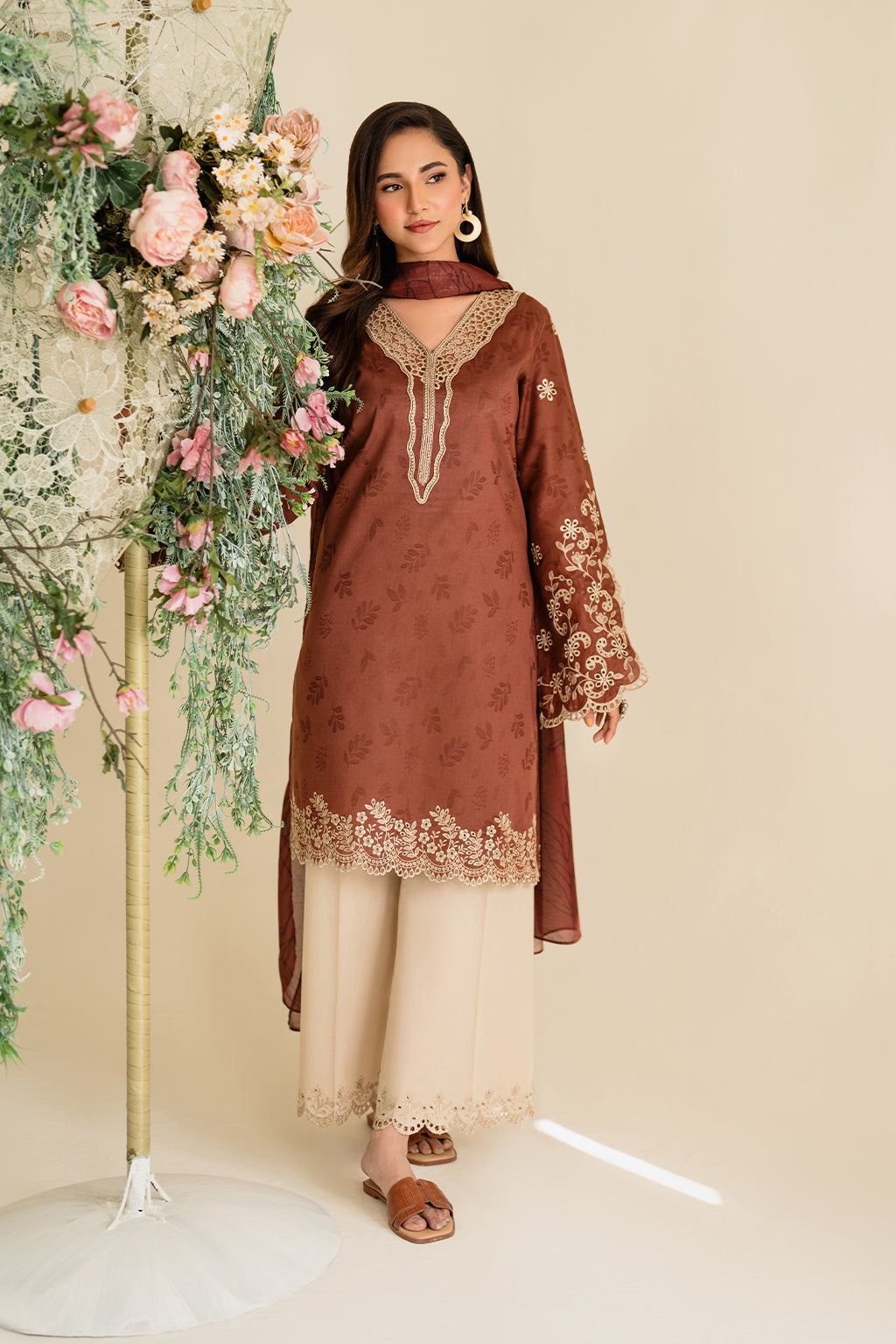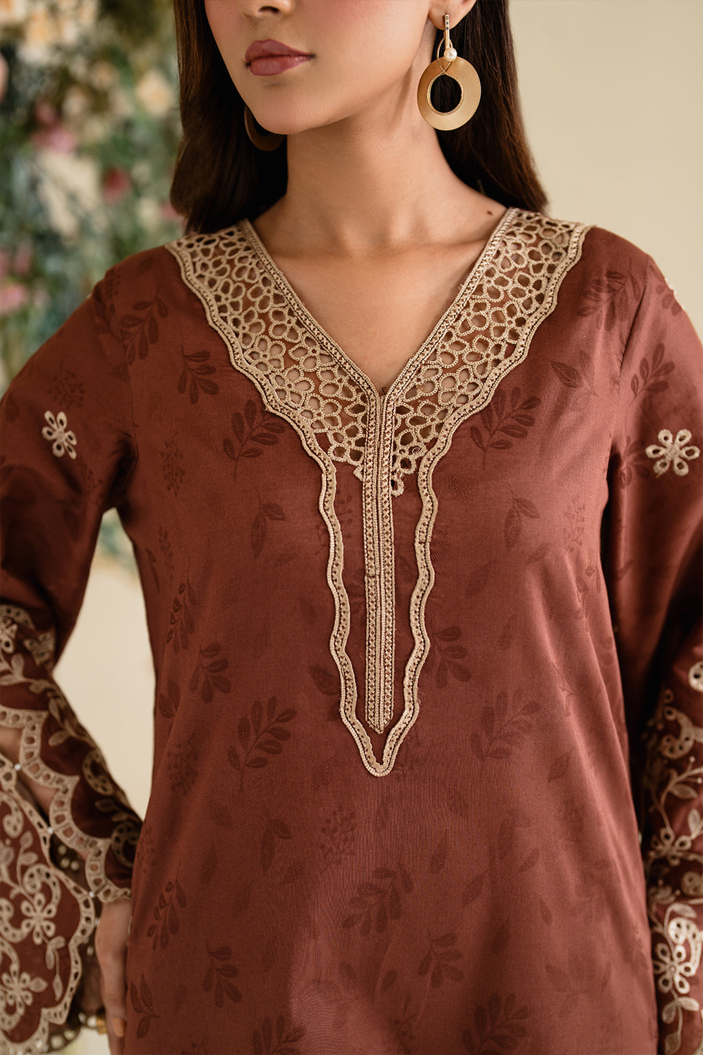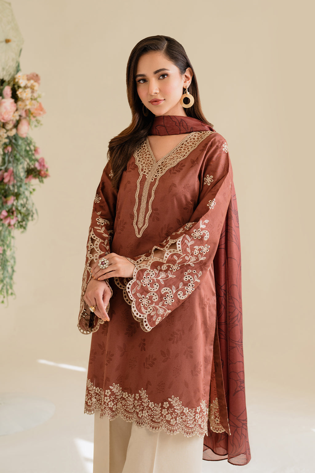 Front & Back Lace: Borer Embroidered Textured Lawn