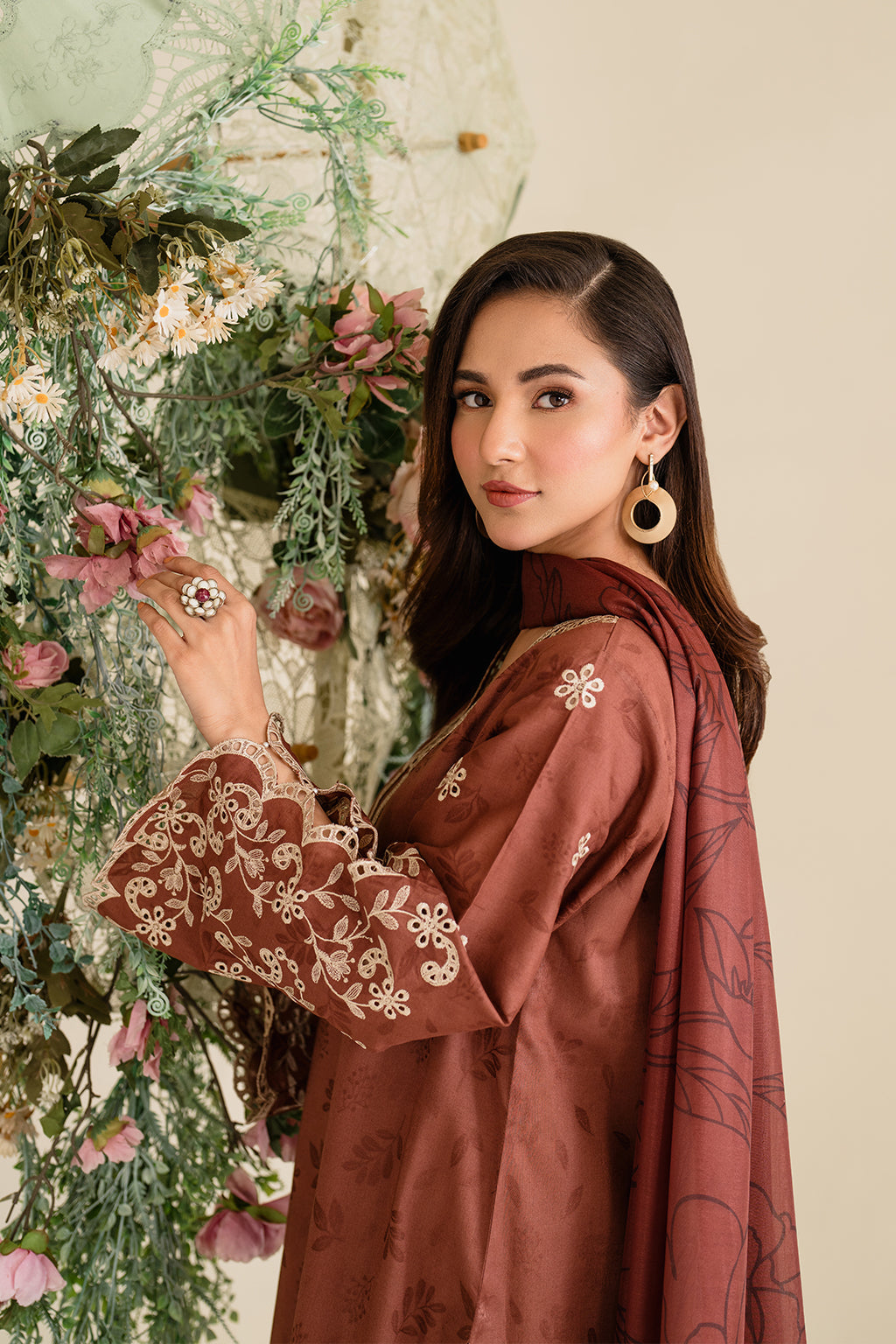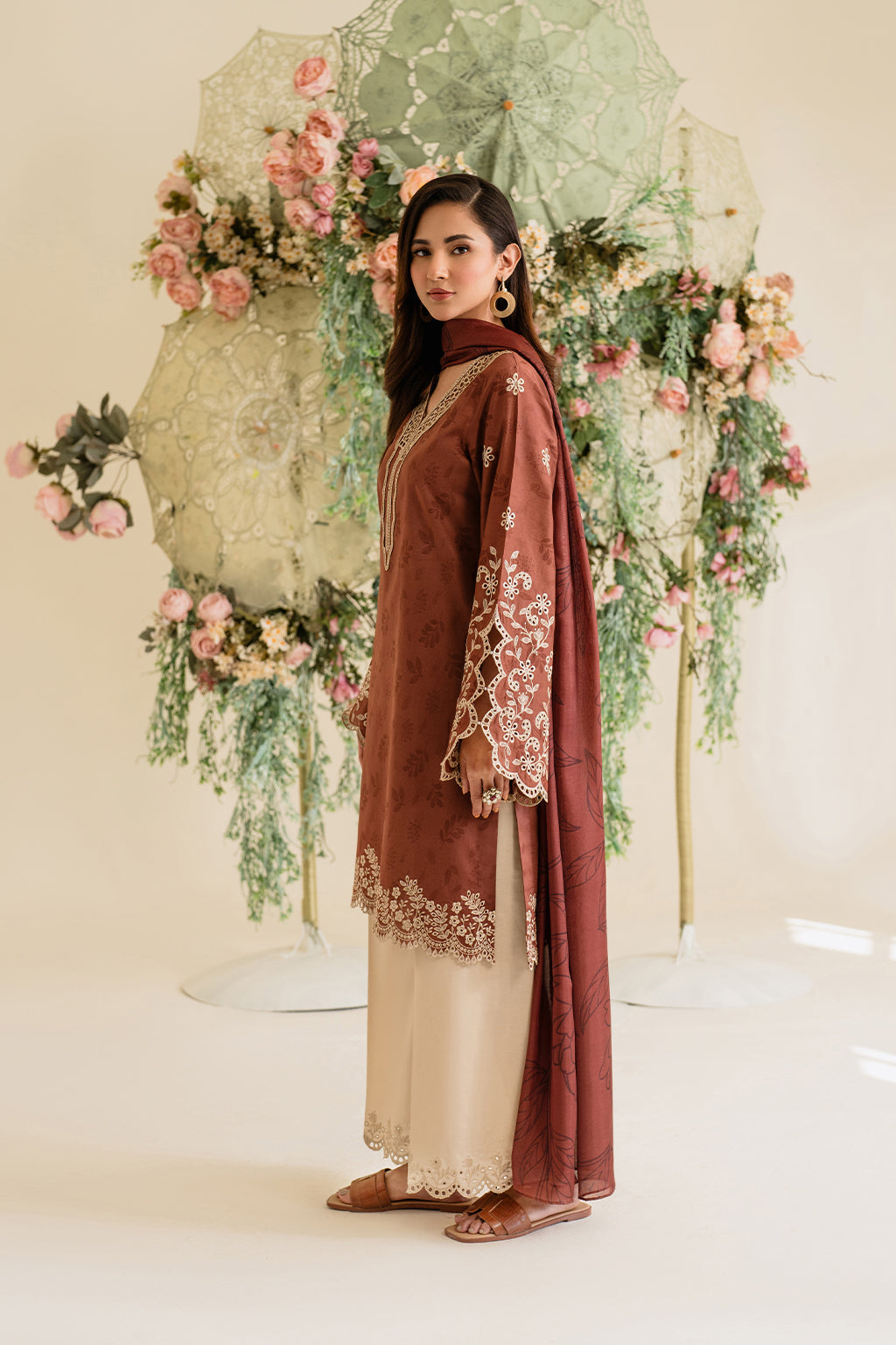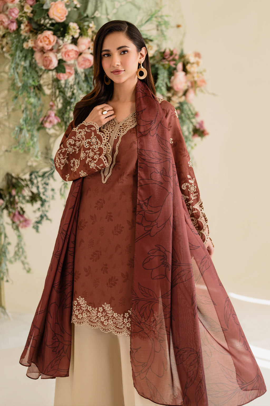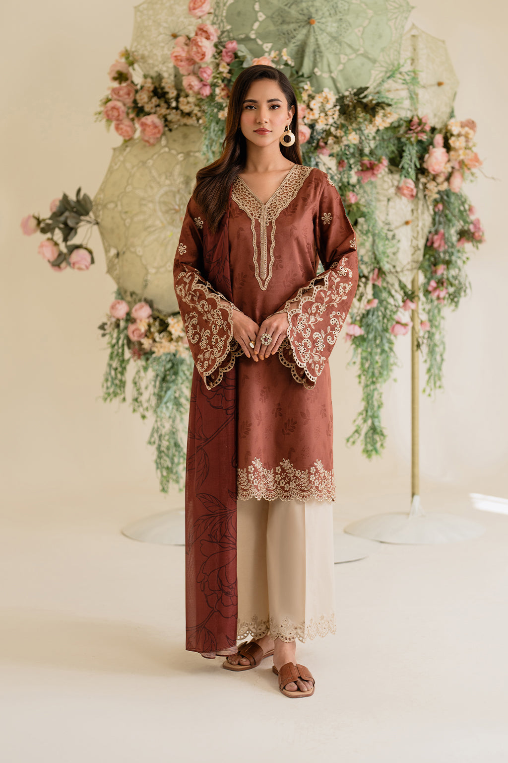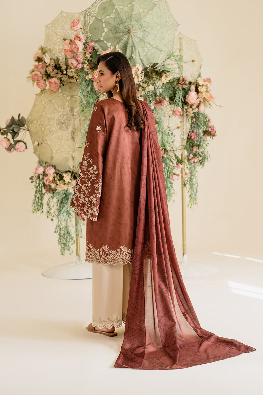 Front & Back Lace: Borer Embroidered Textured Lawn