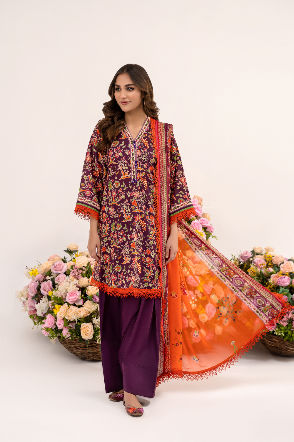 2PC Unstitched | Printed Jacquard Shirt + Chiffon Dupatta