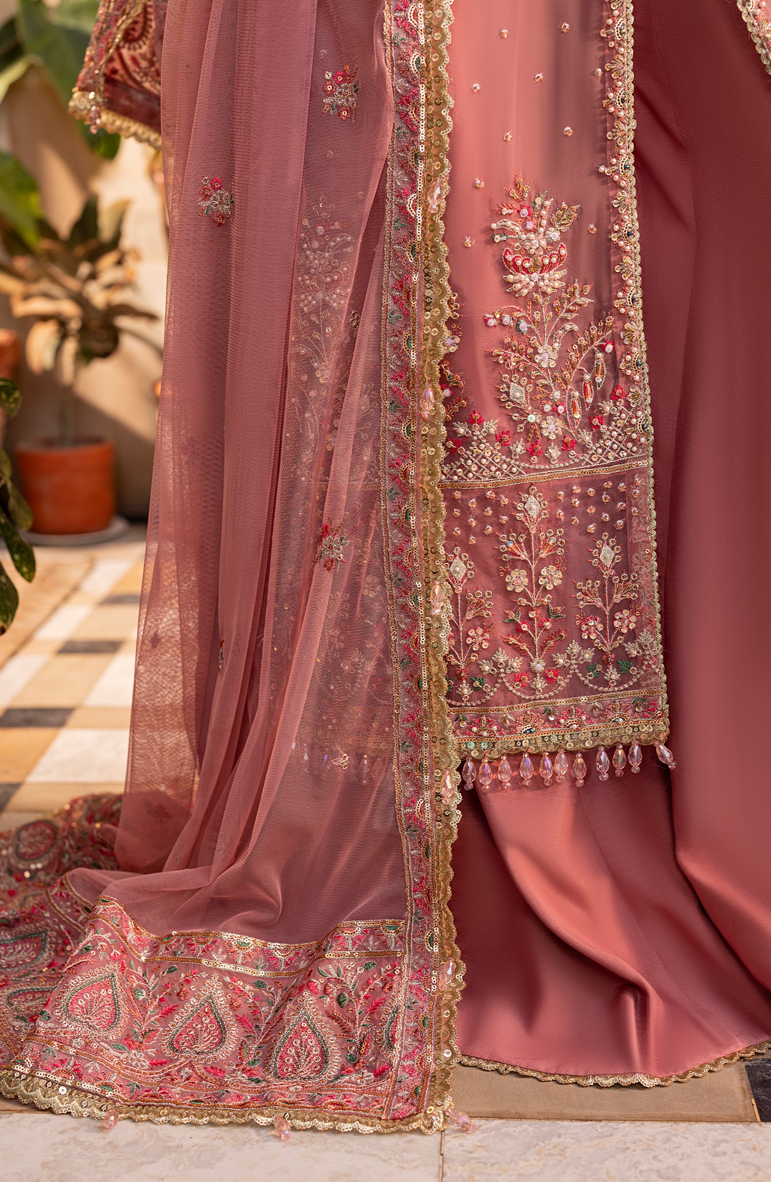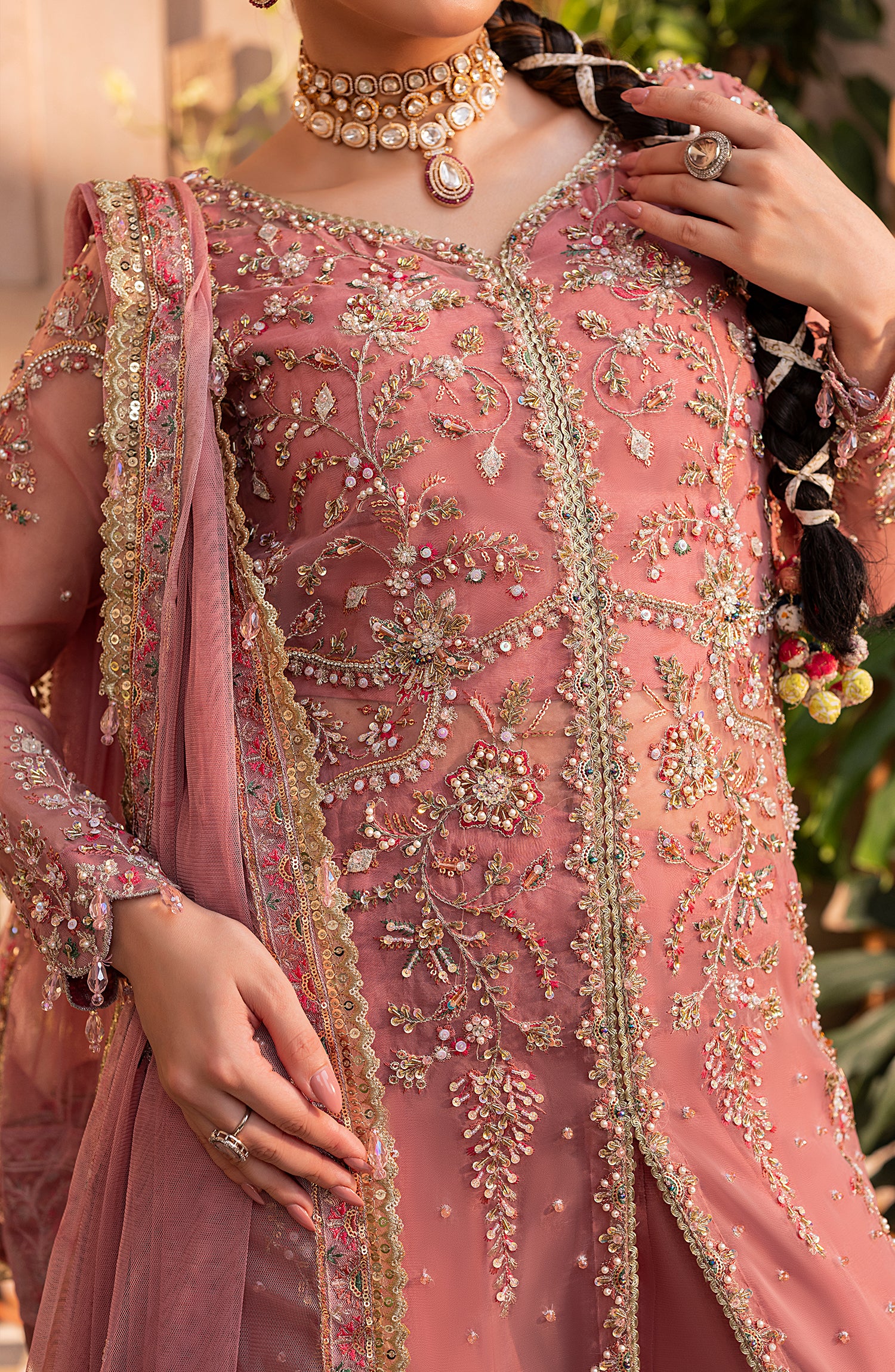 HAND EMBELLISHED DAMAN BORDER FRONT (ORGANZA)