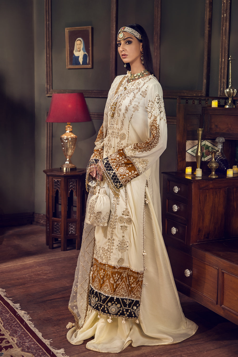 Stitched articles come with trousers tailored to match the unstitched trouser fabric provided. Please note that any appearance of shararas/ghararas in product images is for shoot purposes only unless otherwise specified in product details.